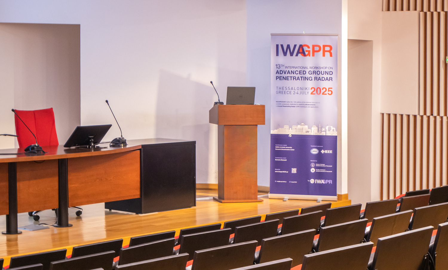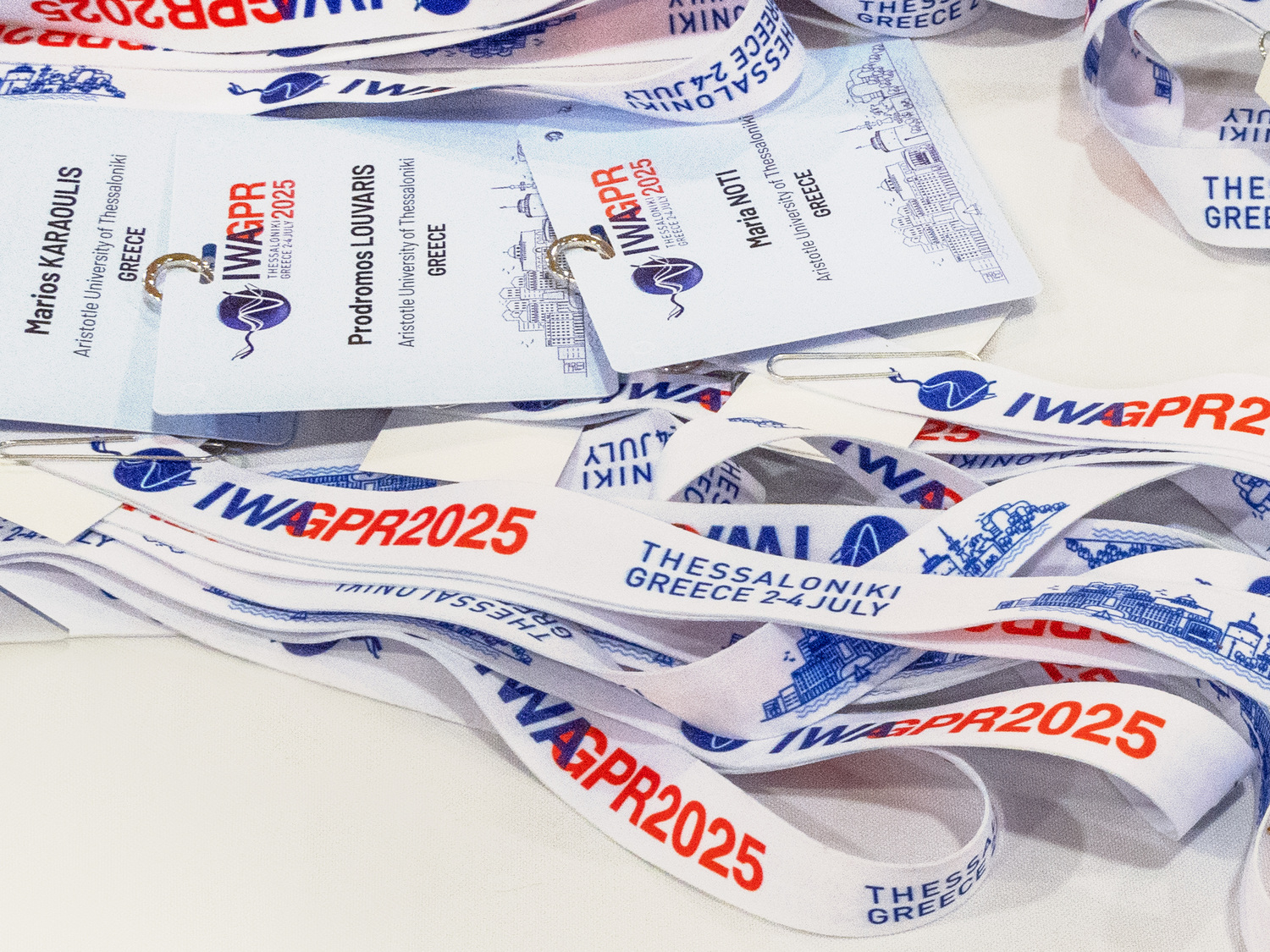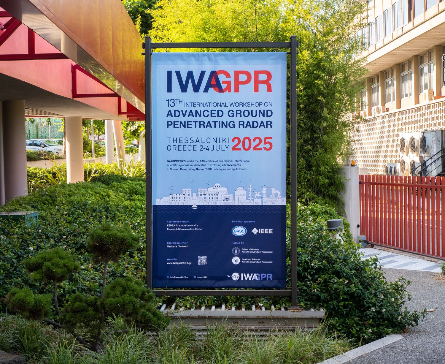 Logo design for IWAGPR, the International Workshop on Advanced Ground Penetrating Radar. The biennial event is a workshop and conference focused on cutting-edge advancements in Ground Penetrating Radar (GPR) technology. Held in Thessaloniki, Greece during summer 2025, IWAGPR convened international scientists, engineers, and GPR users from diverse disciplines.