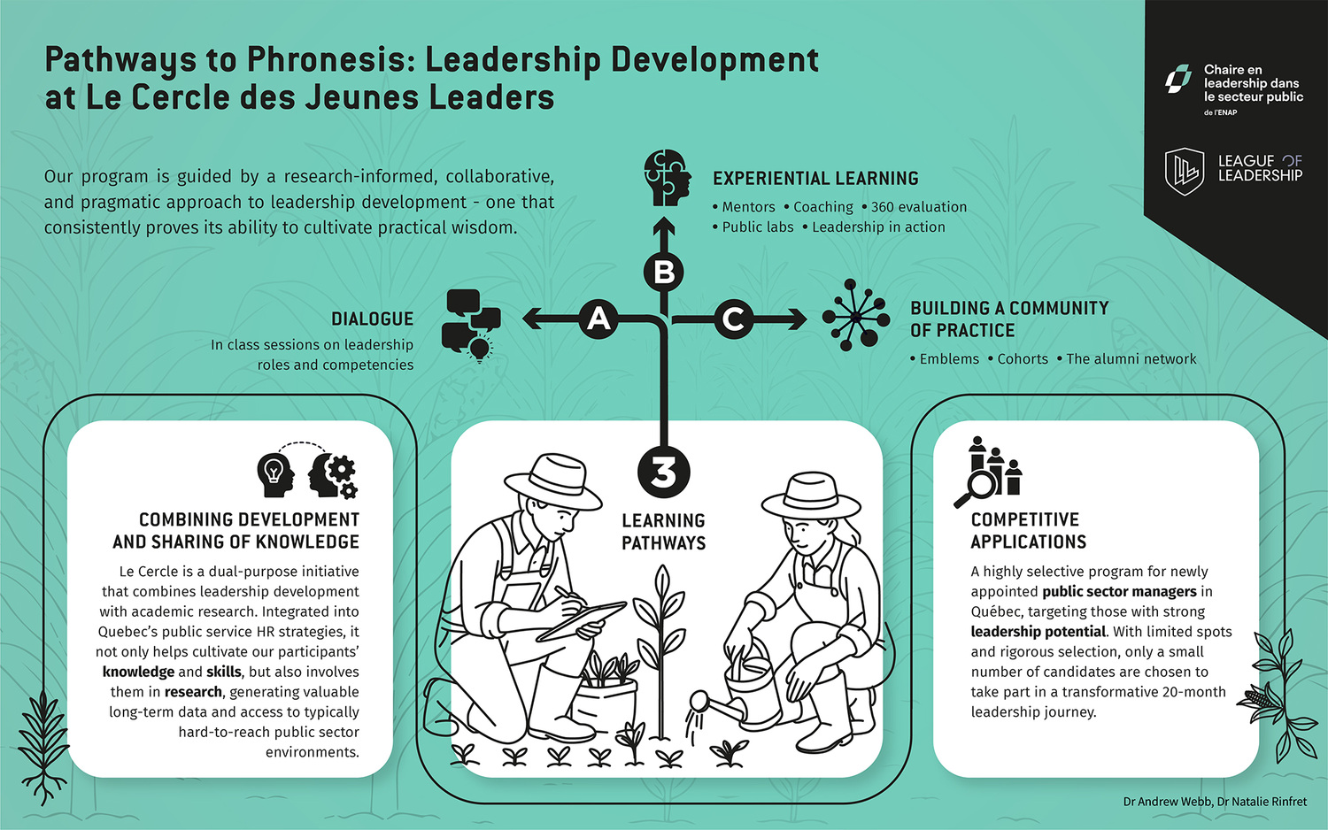 The leagues member schools wanted to showcase their programs concept, strategy and data in a compelling way. We accomplished this by creating custom infographics for each program that visually communicated the key information in a clear and engaging manner. By combining vibrant visuals, typography, and intuitive design, we ensured that each infographic conveyed the essence of each program in a way that was both informative and expressive. The information is shaped in a way that is quickly understood, using recognizable shapes of icons and symbols related to the subject at hand. The aim is to simplify complex topics and also emphasize the fundamental principles behind each leadership development program.