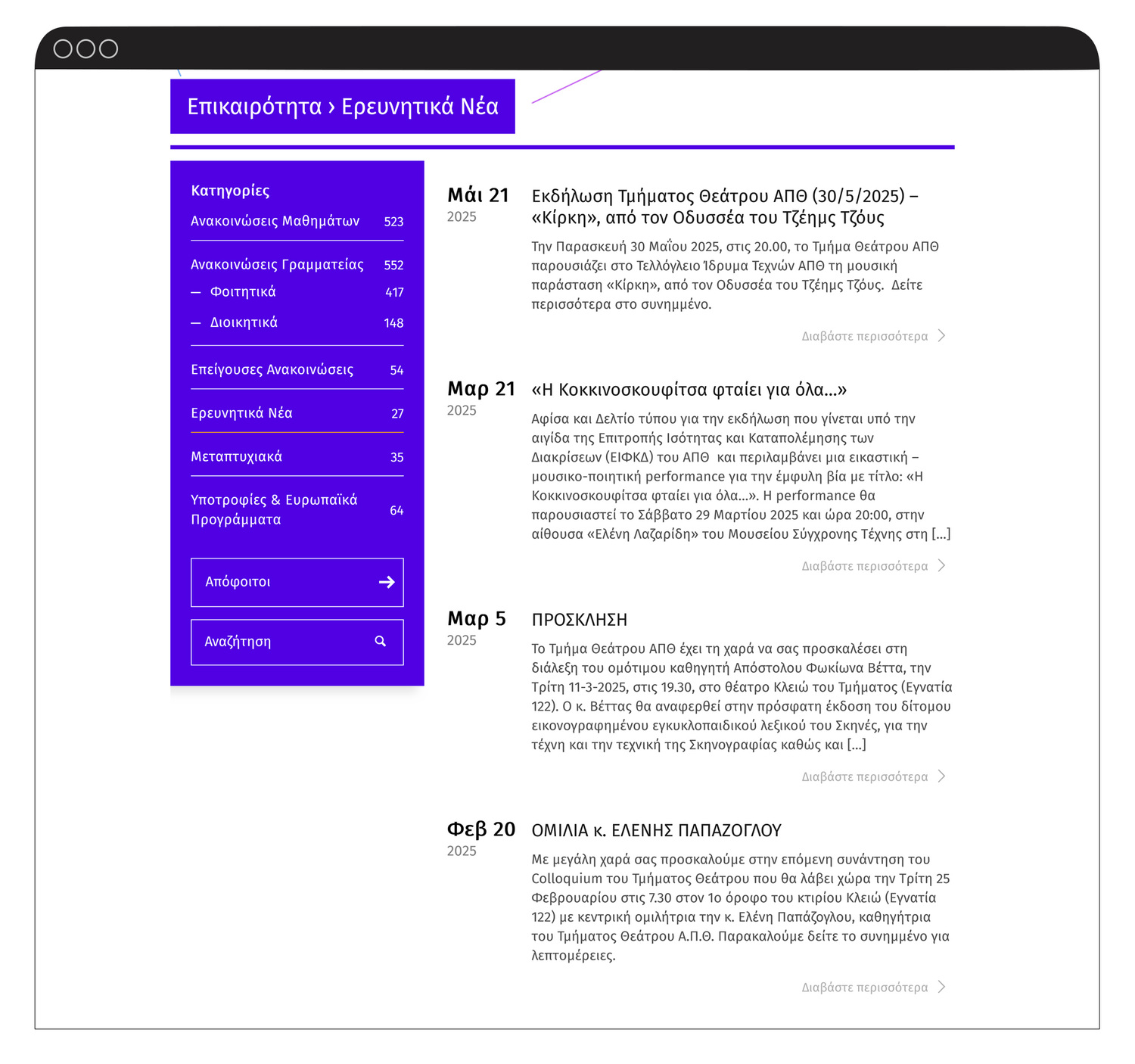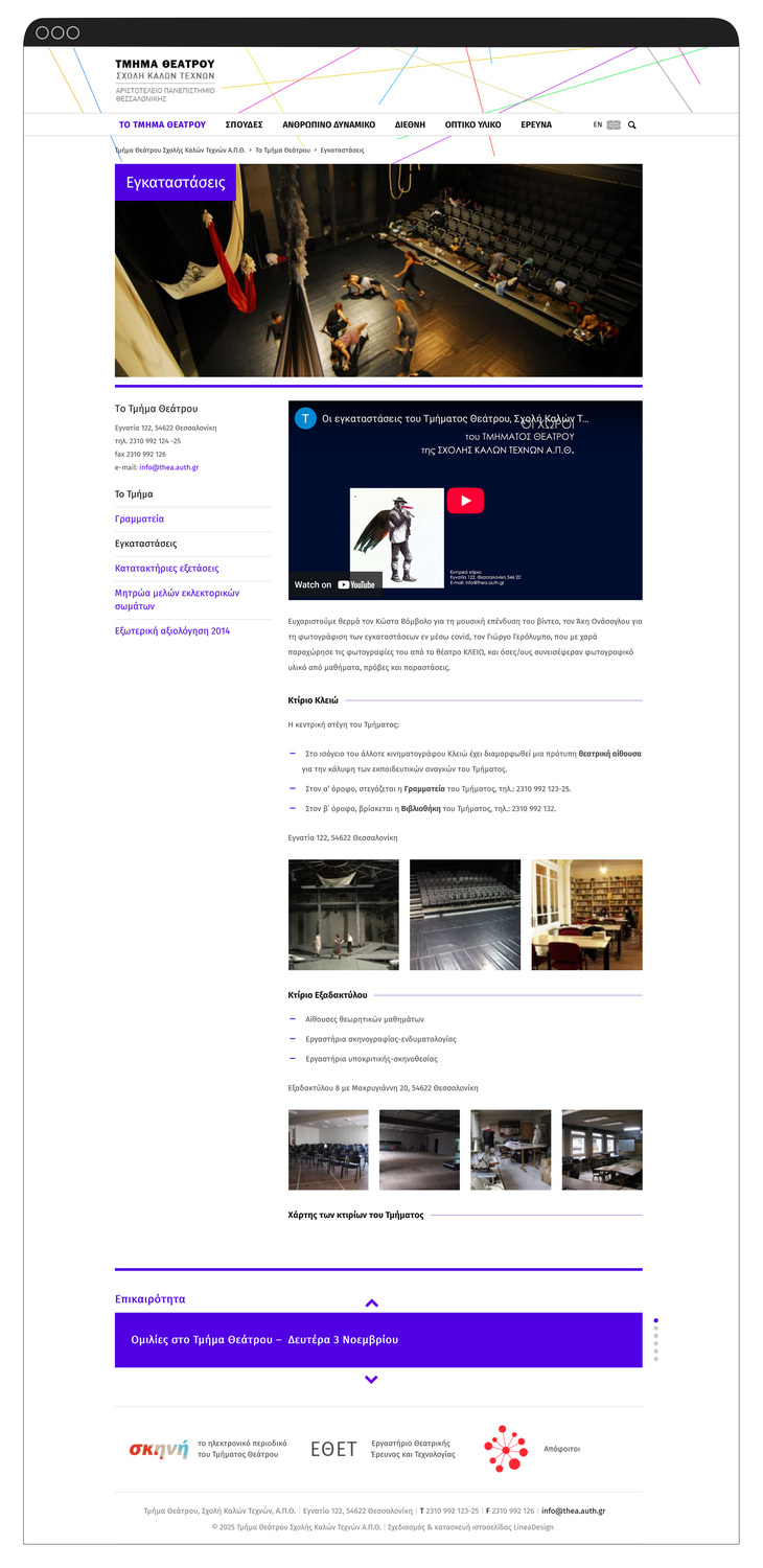 The School of Drama at the Aristotle University offers focused education in following disciplines: Acting, Directing, Stage and Costume Design, Drama and Performance Theory. The programs nurtures imagination and inspiration through exceptional teaching methods, pushing towards higher standards in educational practice.