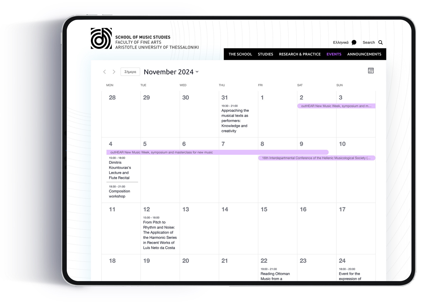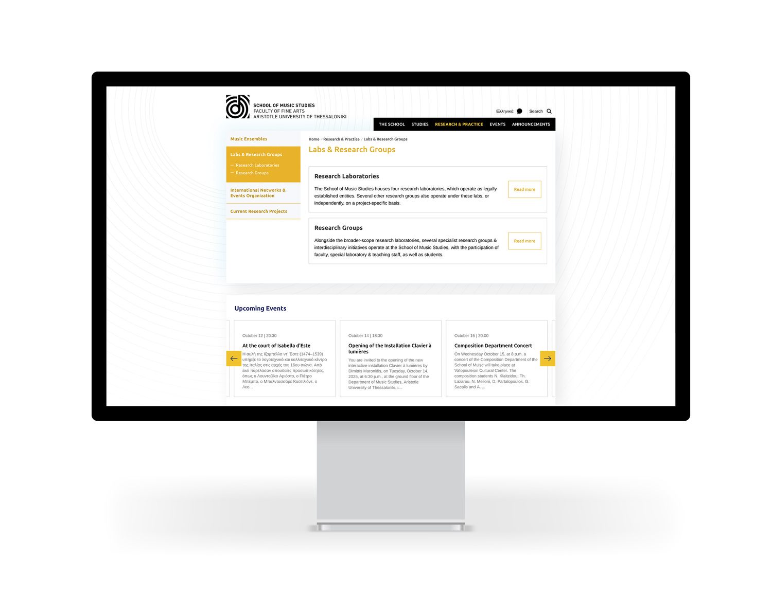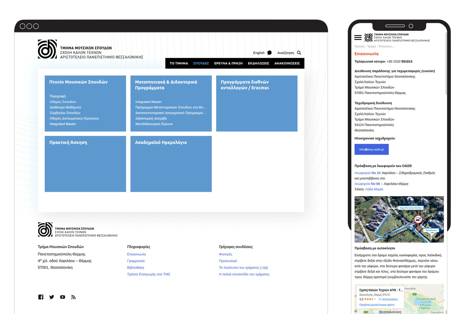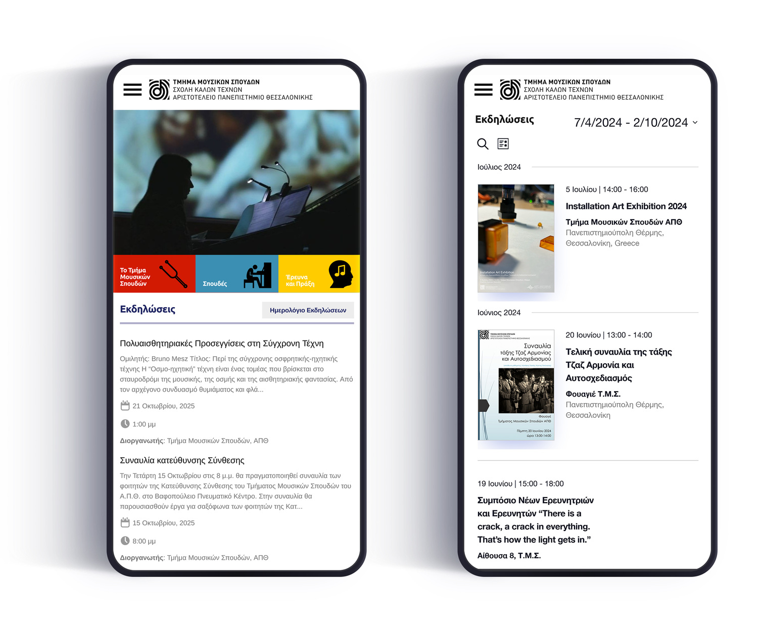 Τhe School of Music at the Aristotle University has more than 30 years of experience in the field of music educational practice and research. Their outdated site didn’t reflect their new innovative, modern approach to Music Studies. Emilios Cambouropoulos the head of the department aimed to increase awareness and understanding of their organization through a better web presence by giving their site a complete overhaul. To meet these goals, we designed a custom site that ensures a seamless and sustainable web experience for multiple audiences — students, educators, researchers and music professionals. We chose a colorful palette and icons making the most important content easily comprehensible and accessible to all users. We condensed and organized tons of information in to cohesive and easily-navigated pages. The site structure can easily be changed by the staff, the menus adapt to the structure automatically. The resulting responsive site includes an events calendar where visitors can easily access upcoming and past music events.